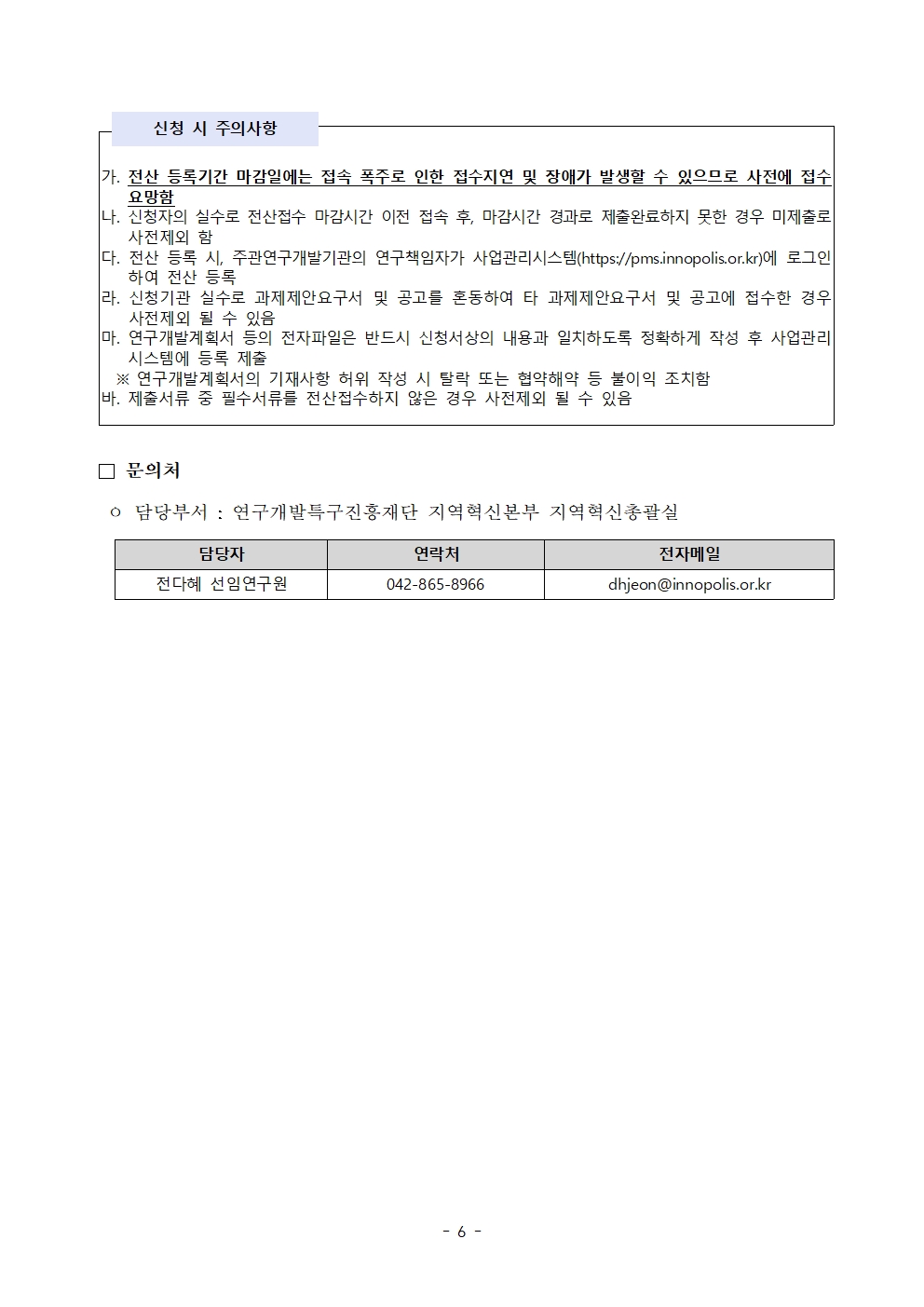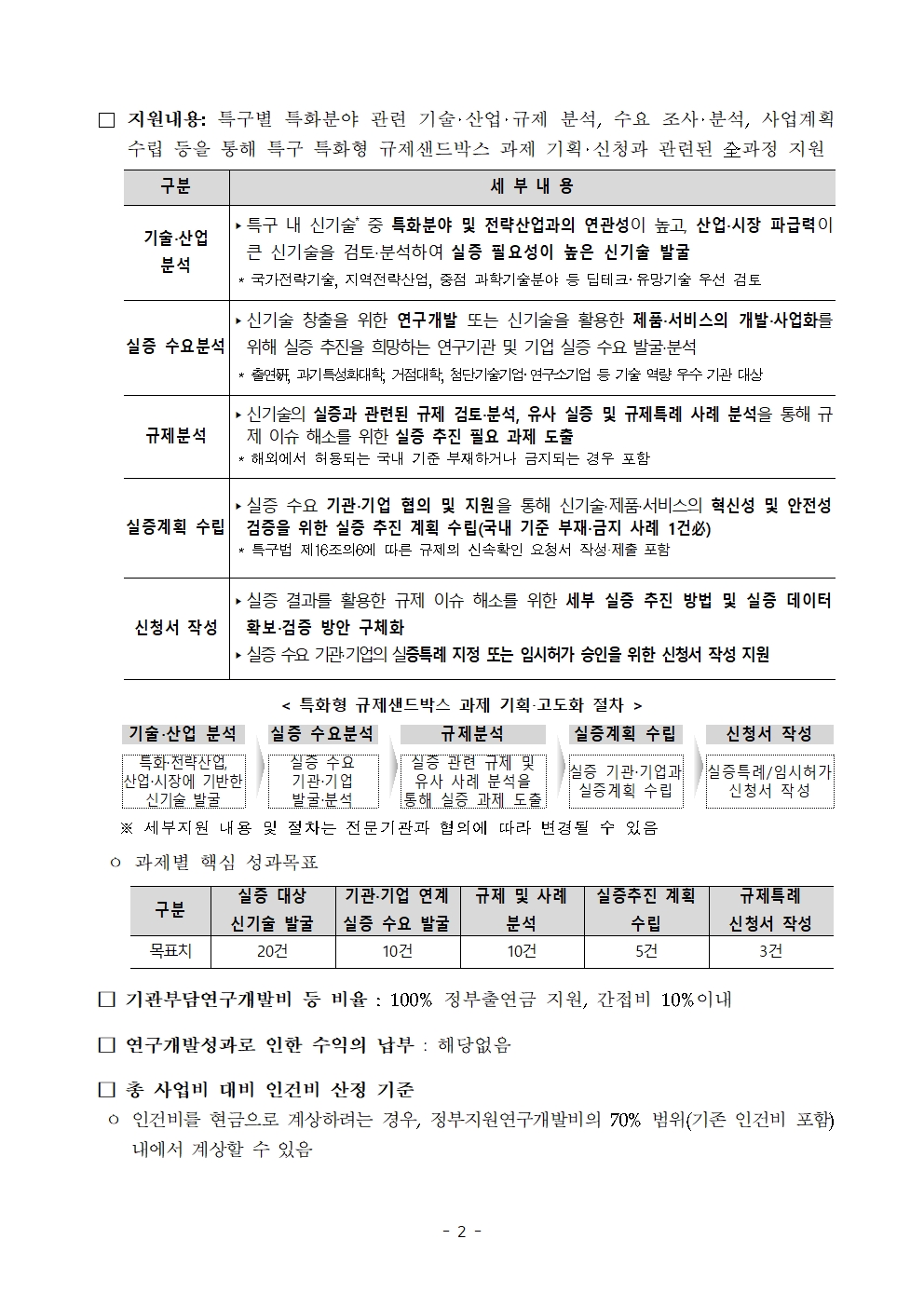 로그인 회원가입 연구소기업 회원가입 사업공고 사업공고 사업공고 연구소기업 연구소기업 연구소기업 소개 등록신청 변경신청 경영현황조사 등록취소신청 첨단기술기업 연구소기업 첨단기술기업 소개 지정(재지정) 신청 변경 지정 신청 지정서 재발급 신청 민원 신청 현황 규제샌드박스 연구소기업 규제샌드박스 소개/안내 규제샌드박스 신청 책임보험 관리 규제샌드박스 변경 신청 현장점검 신청 성과 모니터링 적용 결과보고s 정보마당 정보마당 공지사항 자료실 --> --> --> 평가위원정보 평가위원정보 평가위원 신청 평가위원 정보 현행화 평가이력 조회 기관정보 기관정보 사업체정보 사업체정보이력 제재현황(NTIS제재조치현황포함) 소속인력현황 기관관리자관리 개인정보 개인정보 기본정보 상세정보 개인정보이력 제재현황(NTIS제재조치현황포함) 마이페이지 마이페이지 수행과제현황 과제 신청 평가결과/이의신청 전자협약청 협약정보등록 협약 체결 사업비지급 신청 사업비지급 신청 가상계좌 확인 협약변경 신청 협약변경 신청 연구장비관리 장비도입 관리 장비활용 관리 보고서 제출 성과 제출 성과 등록 사업비 정산 납부계획 정산금 기술료 환수금/제재부가금 기술료납부계획서 기술사업화위원회결과 우수기술발굴 공고목록 접수목록 기술가치평가 지원공고 신청목록 연구소기업 등록신청 변경신청 경영현황조사 등록취소신청 연구개발특구펀드 연구개발특구진흥재단 로그인 회원가입 연구소기업 회원가입 주메뉴 사업공고 연구소기업 연구소기업 소개 등록신청 변경신청 경영현황조사 등록취소신청 첨단기술기업 첨단기술기업 소개 지정(재지정)신청 변경지정신청 지정서 재발급 신청 민원 신청 현황 규제샌드박스 규제샌드박스 소개/안내 규제샌드박스 신청 규제샌드박스 변경 신청 책임보험 관리 현장점검 신청 성과 모니터링 적용 결과보고 정보마당 FAQ 공지사항 자료실 평가위원정보 평가위원신청 평가위원정보현행화 평가이력 조회 기관정보 사업체정보 사업체정보이력 제재현황 개인정보 기본정보 상세정보 개인정보 이력 제재현황 조회 사업공고 사업공고 목록 2025-0035 | 2025년도 연구개발특구 특화형 규제샌드박스 과제 기획 지원 사업 공고 접수기간 2025-11-05 09시 ~ 2025-11-20 15시 공고담당자 지역혁신총괄실 전다혜 조회수 164 첨부파일 첨부 양식, 관련자료 등 위로